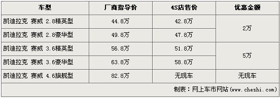 據(jù)4S店銷售人員介紹,目前凱迪拉克SLS賽威全系最高優(yōu)惠5萬元。2.8L分為精英版和豪華版兩個車型,經(jīng)2萬元優(yōu)惠后售價分別降到了42.8萬元和47.8萬元。3.6L車型優(yōu)惠5萬元達到了全系的最高,優(yōu)惠后3.6精英版售價從56.8萬元下降到了51.8萬元,3.6豪華版售價也從63.8萬元下降到了58.8萬元。