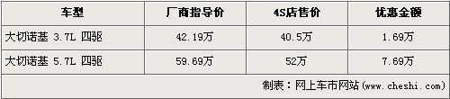 吉普大切諾基是吉普家族中極具個性的一款大尺寸車型,在推出3.7L排量車型后,消費者的選擇空間更大,同時帶給駕乘者完全不同的駕駛體驗。根據(jù)網(wǎng)上車市價格監(jiān)測系統(tǒng)顯示,目前大切諾基的售價最高可優(yōu)惠到7.69萬元,具體車型以及價格如下: