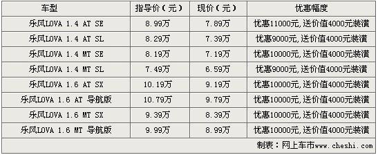 據(jù)雪佛蘭LOVA“樂風”銷售人員表示,購買雪佛蘭LOVA“樂風”車型除了可以得到10000元的價格優(yōu)惠外,還可以得到價值4000元的裝潢大禮包。優(yōu)惠后的雪佛蘭樂風LOVA 1.4 SL MT僅售6.59萬元。