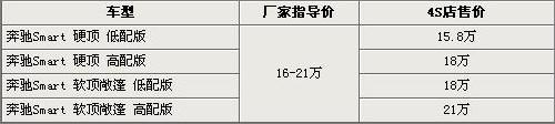 繼奔馳Smart Fortwo于08年北京車展首次與國(guó)內(nèi)消費(fèi)者見(jiàn)面后,奔馳Smart將于本月8日正式上市。奔馳Smart首推四款車型,分別為兩款硬頂版和兩款軟頂敞篷版車型,其中奔馳Smart硬頂?shù)团浒嫒腴T車型的售價(jià)為15.8萬(wàn)元。在動(dòng)力方面,奔馳Smart將搭載1.0L汽油發(fā)動(dòng)機(jī),并且采用后輪驅(qū)動(dòng)。