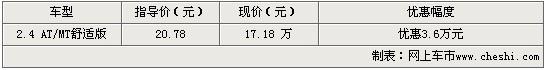 外觀上,08款別克君越改進(jìn)了尾燈造型,由原來的透明式鏡面電鍍鎢光燈罩改為亦動(dòng)亦靜的“展翼式”紅色燈組新設(shè)計(jì),布局設(shè)計(jì)突顯“動(dòng)靜合一”的產(chǎn)品理念,突出大氣尊貴與精致優(yōu)雅,既有堅(jiān)盾之“靜”,體現(xiàn)了別克家族血緣,呼應(yīng)了車尾線條,又“動(dòng)”如展翅,兼顧精致豪邁,流光溢彩紛呈。近日根據(jù)網(wǎng)上車市價(jià)格監(jiān)測(cè)系統(tǒng)顯示,目前上海地區(qū)購買別克君越全系車型可以得到3.6萬元的價(jià)格優(yōu)惠。具體車型報(bào)價(jià)如下表: