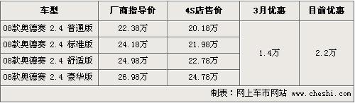 據北京地區(qū)廣州本田4S點銷售人員表示,目前銷售的08款奧德賽降幅又出現(xiàn)了新的優(yōu)惠幅度。3月份左右,奧德賽全系優(yōu)惠到了1.4萬元,而目前增加到了2.2萬元,直接增加8000元,最低價格僅售20.18萬元,F(xiàn)在購車除了可以得到現(xiàn)金優(yōu)惠外,還可以得到商家贈送的原廠汽車裝飾。在現(xiàn)售的四款奧德賽車型中,普通版座椅為絨布材質,其他三款均為真皮材質,現(xiàn)車多以黑色和銀色為主。