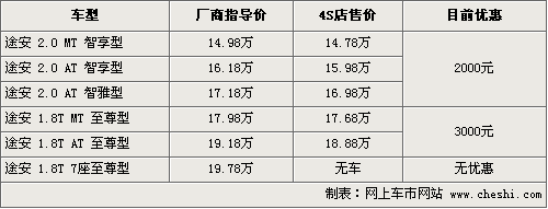據(jù)4S店銷售人員介紹,新途安經(jīng)過官方價(jià)格下調(diào)后優(yōu)惠的幅度有所減少。目前消費(fèi)者購(gòu)車的話幅度在2000元—3000元,其中2.0三款車優(yōu)惠2000元,1.8T優(yōu)惠3000元。4S店現(xiàn)車主要以銀色現(xiàn)車為主,1.8T7座至尊版沒有現(xiàn)車供應(yīng),消費(fèi)者訂車的話需要等2個(gè)星期左右,訂金交2000元。