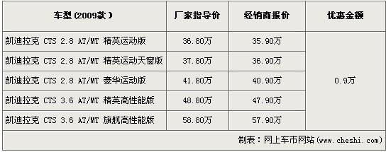 對比起08款款的4.5萬元的優(yōu)惠,09款凱迪拉克的現(xiàn)金讓利是極為“吝嗇”,上個月網上市價格監(jiān)測系統(tǒng)顯示新款凱迪拉克是分文不讓,近日,筆者走訪廣州地區(qū)經銷商處了解到,09款凱迪拉克有9千元的降價,優(yōu)惠逼迫近萬大關。全系現(xiàn)車充足,主打紅色車和黑色車系。具體價格如下: