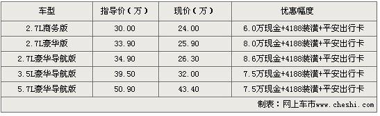 據(jù)克萊斯勒經(jīng)銷商表示,購(gòu)買克萊斯勒300C除了可以得到300C的價(jià)格優(yōu)惠外,還可以得到4188元的裝潢大禮包和平安出行卡,銷售人員還表示,報(bào)價(jià)表上的車型展廳有現(xiàn)車都不需要預(yù)定。