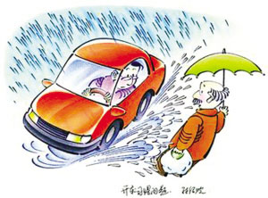 無車德行為五:雨天濺人一身泥水