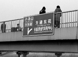 據(jù)了解,關(guān)于“山寨指路牌”的帖子最早出現(xiàn)在天通苑生活社區(qū)網(wǎng)的論壇里,題目為“金睛火眼辨真?zhèn)危捍蠹襾?lái)投票”,發(fā)帖者“飛揚(yáng)”稱,讓網(wǎng)友看看“這塊安裝在城鐵立水橋站天橋上的牌子是真是假”,并貼出圖片。