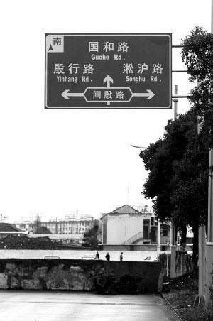 從楊浦五角場地區(qū)的殷高路,往閘殷路方向開,一路上并沒有看到什么異常情況,但快開到殷高路盡頭時,卻發(fā)現(xiàn)車開不下去了,原來,這里設(shè)置了一道半人高的簡易墻,把整條馬路“攔腰”截斷,使之成為一條“斷頭路”。但在簡易墻上方的道路交通標志牌上,只標明了往左往右可以去哪條路的信息,卻沒有“斷頭路”的任何標志。這很容易使司機“誤入死路”。記者還發(fā)現(xiàn),這條“斷頭路”并不是因為修路或者施工造成的,而是人為的。