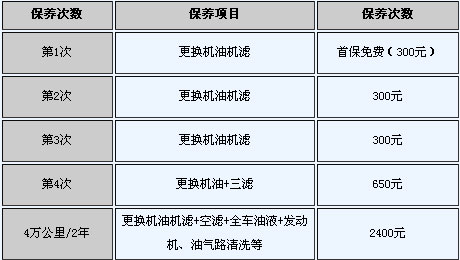 6.保養(yǎng)費(fèi)。假設(shè)一年跑2萬公里,廠家規(guī)定每5000公里保養(yǎng)一次,一年則需要做保養(yǎng)4次。由維修點(diǎn)處可知,每隔兩萬公里三濾全換費(fèi)用為650元,三次常規(guī)保養(yǎng)(只更換機(jī)油機(jī)濾)300元,,此外每4萬公里或兩年要做一次全車徹底大保養(yǎng)(更換機(jī)油機(jī)濾+空濾+全車油液+發(fā)動(dòng)機(jī)、油氣路清洗等)為2400元,那么平均一年保養(yǎng)費(fèi)用花費(fèi)大概2425元左右。