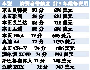作為一種耐用消費品,車輛的耐用性(使用成本)已經(jīng)成為購車的主要衡量指標。近日,美國財經(jīng)雜志《福布斯》評出了10大經(jīng)久耐用車型(Ten Toughest Cars)。評比標準涉及消費者信賴度,新車故障率,前5年維修費用及安全性能等綜合表現(xiàn),結(jié)果日系車大獲全勝。除了奧迪A4、沃爾沃XC90外,排名最耐用性前10名中有8款是日本車系,美國本土車型則全軍覆沒。其中本田一家就占了6款,奧德賽和雅閣分別位于排行榜的前兩位,這或許可以解釋日系車在全球范圍內(nèi)的成功。(王燦彬)