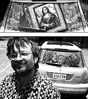 說到臟車藝術(shù),大家是不是有點糊涂?這得從美國人斯科特·韋德說起,家住得克薩斯州的他每隔一段時間就開著自己的車前往鄉(xiāng)下,在顛簸的土路上來回行駛。他不是在測試車的減震系統(tǒng),也不是在享受駕駛樂趣,而是為了把車弄得“風(fēng)塵仆仆”,給他的臟車藝術(shù)創(chuàng)作獲取材料,F(xiàn)年48歲的韋德畢業(yè)于得州大學(xué)藝術(shù)系,4年來,這位特立獨行的藝術(shù)家從不洗車,而是任憑車的后擋風(fēng)玻璃被灰塵覆蓋,然后將玻璃當(dāng)作畫布,將灰塵當(dāng)作顏料,展開藝術(shù)創(chuàng)作。