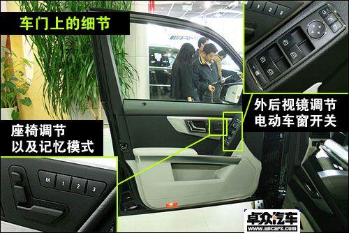 我們這次拍攝到的GLK350是GLK系列中的頂級車款,它配備有車載電話、液晶顯示屏、后排空調(diào)出風(fēng)口、多功能方向盤、全景天窗、電動座椅調(diào)節(jié)、頭枕高度電動調(diào)節(jié),并且?guī)в杏洃浤J降鹊仁孢m性配置,同時8安全氣囊、ESP的配備又為GLK上了一把安全鎖。