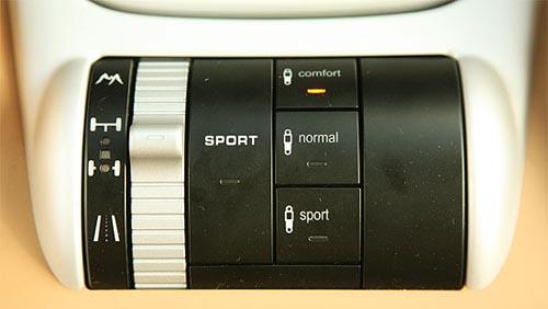 當(dāng)然,如果在一般模式下,還嫌不過癮的話,那排檔桿后方的“Sport”運(yùn)動模式鍵,這時就該提槍上陣了。一切換后,可以激活卡宴GTS這頭大動力怪獸,在“Sport”運(yùn)動化模式下,格調(diào)完全與小排氣量發(fā)動機(jī)那種拉高待命轉(zhuǎn)速域因應(yīng)沖刺的思維截然不同?ㄑ鏕TS行駛中切到“Sport”模式后,會發(fā)現(xiàn)右邊的PASM保時捷主動式懸掛調(diào)整系統(tǒng),也會連動至最硬朗設(shè)定的Sport模式,讓整臺車處于最運(yùn)動化的設(shè)定。