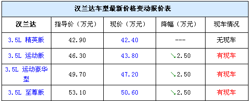 漢蘭達:清理庫存低配現(xiàn)車少,優(yōu)惠減至2.5萬
