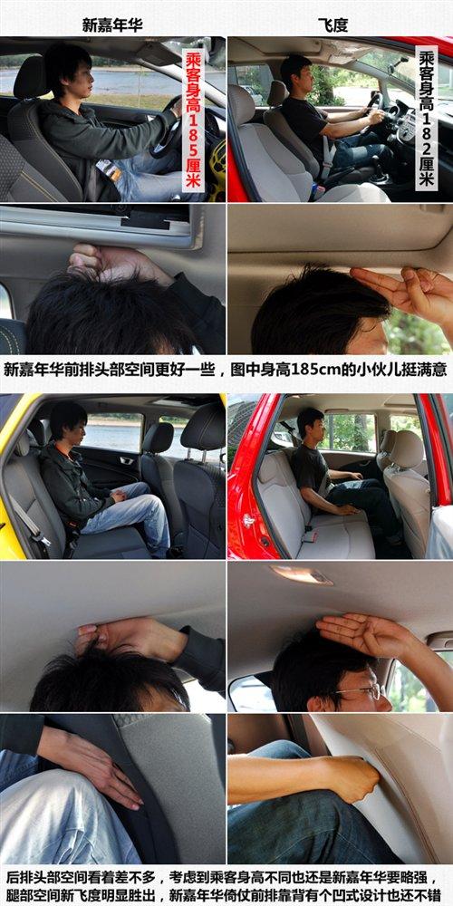 以亞洲人的身高來(lái)看,兩款車(chē)型的頭部空間都屬于夠用級(jí)別。其中新嘉年華要略好一些,至少我們圖上那位身高185cm的小伙兒就沒(méi)覺(jué)得有什么壓抑的感覺(jué)。而飛度車(chē)內(nèi)的乘客身高為182cm,頭部空間的余量顯然不如新嘉年華。