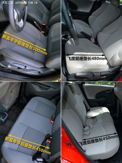 值得稱(chēng)道的是新嘉年華的前排座椅,椅形設(shè)計(jì)得很不錯(cuò),包裹性和支撐性比較到位,而且前座墊的長(zhǎng)度達(dá)到了500mm,超過(guò)了一般的小型車(chē)水平,而飛度的前座墊只有480mm。后排座墊兩者則一個(gè)水平,均為450mm。