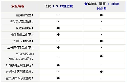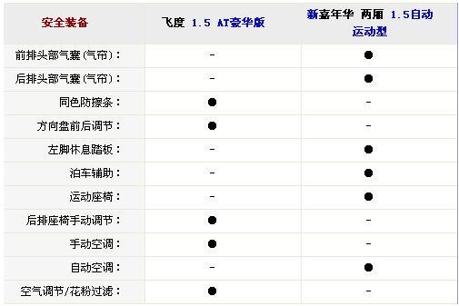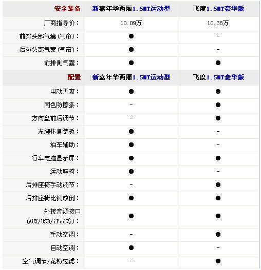 兩款車型的定價區(qū)間有不小的差距,大概在八千元左右。不過,因為飛度目前有大約3000元左右的少量優(yōu)惠,實際算下來售價還算是接近的。這種情況下配置的比較也才顯得更有意義。