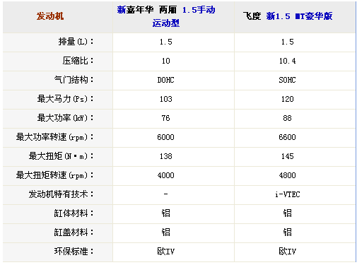 左:新嘉年華1.5發(fā)動(dòng)機(jī) 右:飛度1.5發(fā)動(dòng)機(jī)