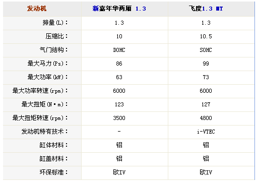 前面已經(jīng)說過,新嘉年華和飛度都是1.3和1.5兩個(gè)排量,如果只看發(fā)動(dòng)機(jī)參數(shù)的話,那飛度顯然要強(qiáng)出太多了。先來看1.3排量,飛度多出13馬力和4N·m。1.5升發(fā)動(dòng)機(jī)則差得更多,飛度比新嘉年華高出17馬力和7N·m。盡管參數(shù)上不具備優(yōu)勢(shì),但是新嘉年華針對(duì)城市游弋的特征要更加明顯,最大扭矩到來的比飛度要早很多,尤其是1.3升車型,兩者最大扭矩輸出轉(zhuǎn)速相差了1300轉(zhuǎn)之多。