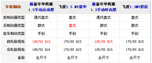 車輪制動(dòng) 新嘉年華兩廂1.5手動(dòng)運(yùn)動(dòng)型 飛度1.5 MT豪華 新嘉年華兩廂1.3手動(dòng)時(shí)尚型 飛度1.3MT舒適