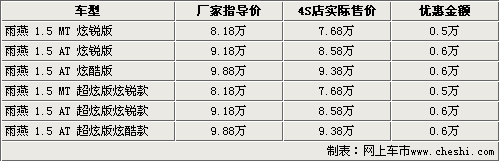 據(jù)長安鈴木4S店銷售人員介紹,雨燕目前現(xiàn)車比較充足, 1.5L雨燕車型在北京最高可給出6000元的優(yōu)惠,相比前一陣優(yōu)惠金額增加500元。另外,倍受關(guān)注的雙色版雨燕目前的價格仍然沒有變化,并且均為訂單銷售,各店沒有現(xiàn)車。若想購買需要提前預(yù)訂,訂金2000元,四周后提車。