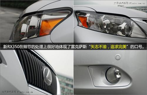 超細(xì)的面板間隙體現(xiàn)出新RX350在做工上的精益求精。這不禁讓我想起了雷克薩斯的廣告語“矢志不渝,追求完美”。鷹眼大燈與ES350頗為神似,炯炯有神。