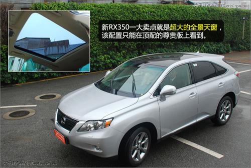 從高處俯瞰新RX350,長890 mm,寬800 mm的全景式天窗映入眼簾。這樣的設(shè)計(jì)可以讓后排乘客也可充分享受到陽光的滋潤。值得一提的是,該項(xiàng)配置僅可在售價(jià)達(dá)85.2萬元的RX350尊貴版上看到。