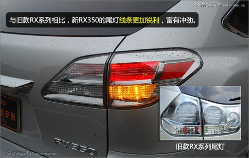 新RX350變化最大的莫過于全新設(shè)計的組合式尾燈了。更流線型的造型,更絢麗的LED燈組合,營造出跑車般的視覺效果。