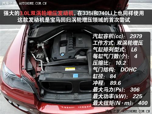 X6一種有兩款車,分別是xDrive35i和xDrive50i,此次我們體驗(yàn)的是前者,它搭載的是和已經(jīng)引進(jìn)的335i一樣的發(fā)動機(jī):3.0排量雙渦輪增壓。這款發(fā)動機(jī)可以說是寶馬回歸渦輪增壓領(lǐng)域的首次嘗試,效果怎么樣?335i已經(jīng)被證明相當(dāng)猛。