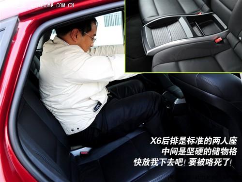 說到乘坐空間的話,這里就必須要批評一下X6了,雖然是四輪驅(qū)動(dòng),但后排的地板卻出乎意料地平整,有了如此優(yōu)越的先天條件,可是為什么一定要設(shè)計(jì)成4座車型呢?后排只有兩個(gè)座位,實(shí)在有點(diǎn)浪費(fèi)如此大的空間了。