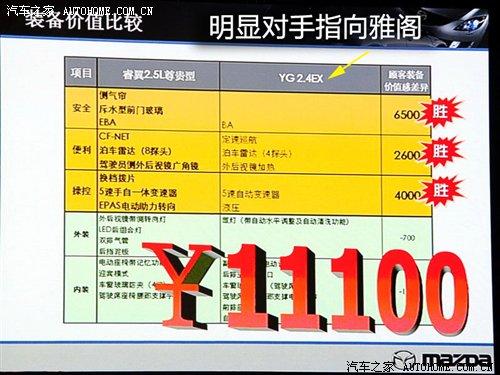 此次上市發(fā)布會(huì)上面一汽馬自達(dá)將自己的配置和同級(jí)別車(chē)型進(jìn)行了對(duì)比,公開(kāi)發(fā)布了同級(jí)別售價(jià)的車(chē)型相比睿翼在配置方面的性?xún)r(jià)比會(huì)高出1.11萬(wàn)元的口號(hào),并且現(xiàn)場(chǎng)用PPT進(jìn)行了展示。