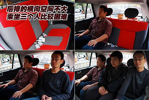 后排的腿部空間固然表現(xiàn)不錯,但后排的座椅寬度卻仍然是微型轎車的標準。通過圖中可以看的出來,后排坐下兩名乘客正合適,如果再擠上一個人,會顯得非常擁擠。不過如果身材小一點,后排坐下三名乘客還是沒有問題的。