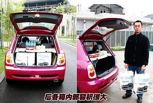 力帆320的后備箱內(nèi)部空間比較大,像圖中模特所提的袋子,后備箱至少可以放四個以上。而且這款車的后備箱上面帶有置物隔板,可以放一些小件物品。經(jīng)過測試,后備箱可以放下一箱礦泉水、四個袋子以及抽紙盒等其他小件物品,實用性很好。