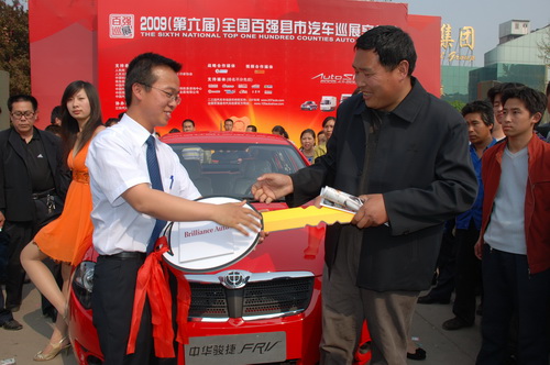 中新網(wǎng)4月19日電 4月12日下午3時(shí)許,中華駿捷FRV新車交接儀式在辛集站巡展現(xiàn)場(chǎng)舉辦。一位辛集的中華駿捷FRV新車主接過閃閃發(fā)亮的鑰匙模型,激動(dòng)地說道,謝謝華晨汽車、謝謝百強(qiáng)巡展。