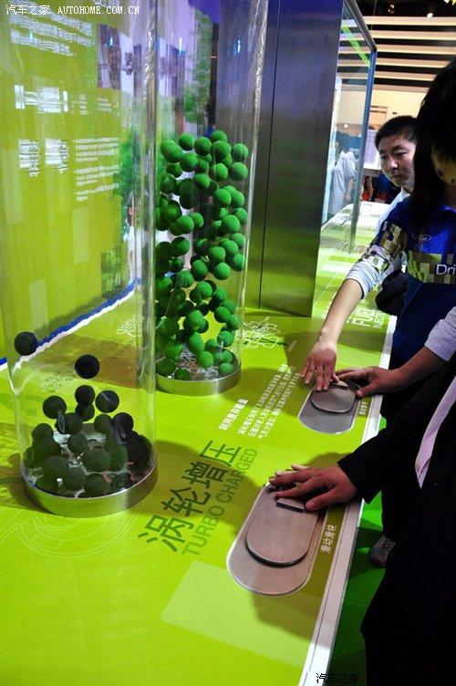 在福特的展臺,為了向大家演示福特的渦輪增壓技術(shù),福特特意設(shè)計了這個對比“吹小球”的裝置告訴大家:有渦輪增壓器的車型會比普通車型擁有更大的進氣壓力。
