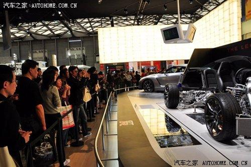 日產(chǎn)GT-R展車的旁邊停著一輛解剖的演示車,很多似懂非懂的觀眾都對著解剖車在給身邊的人認(rèn)真地講解著。我身后的一位兄弟指著GT-R的發(fā)動(dòng)機(jī)向他的女友說著:看,雙離合變速器!@#¥%……&* 我心想:朋友,雙離合變速器真的在后面!看來,高科技跑車除了跑得快,還有一個(gè)重要的作用——給人們提供聊天吹牛的素材。