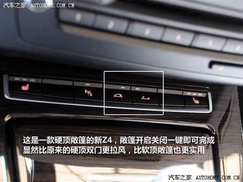 新Z4的空調(diào)面板主要是四個(gè)圓形的調(diào)節(jié)旋鈕,而空調(diào)面板設(shè)計(jì)在音響面板的下方,讓人一時(shí)會(huì)感到奇怪。使用雙區(qū)恒溫自動(dòng)空調(diào)還不錯(cuò)。音響面板下面還有一排小的按鍵,兩端是座椅加熱功能,而中間兩個(gè)很重要,就是硬頂?shù)拇蜷_與收起。天氣晴朗的日子,開上它去兜個(gè)風(fēng),風(fēng)云突變也不會(huì)瞬間從拉風(fēng)變成狼狽,按一下收起,它就會(huì)變成一輛普通的硬頂跑車來遮風(fēng)擋雨。