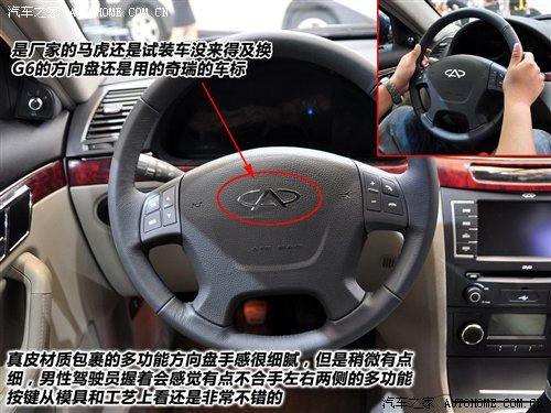 一坐進G6車內,一眼就先看到了它的一個小BUG——作為奇瑞瑞麒品牌產(chǎn)品的G6,既然已經(jīng)有了自己新的車標,為什么方向盤上的LOGO還要用奇瑞的呢?是廠家的馬虎還是來不及換標呢?希望廠家的朋友盡早對此作出調整,現(xiàn)在這樣給人感覺很不好,有拼湊之嫌。不過,這個用真皮材質包裹的多功能方向盤的手感還真挺不錯的,接觸面手感比較細膩,只是作為男性駕駛員,編輯認為方向盤稍微有點細,握著有點不太合手。左右條幅上的功能按鍵從模具工藝上看還是值得肯定的。