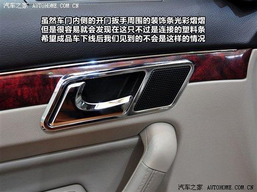 雖然車門內(nèi)側(cè)的開(kāi)門扳手周圍的裝飾條光彩熠熠,但是很容易就會(huì)發(fā)現(xiàn)在這只不過(guò)是連接的塑料條,希望成品車下線后我們見(jiàn)到的不會(huì)是這樣的情況。在車門上專門用于側(cè)窗玻璃除霜的出風(fēng)口設(shè)計(jì)比較貼心,終于在我們自己的產(chǎn)品中看到了這種人性化度較高的設(shè)計(jì)。這個(gè)小出風(fēng)口在車內(nèi)外溫差較大時(shí),玻璃上的霧氣對(duì)駕駛安全有很大影響,所以保持該區(qū)域內(nèi)的清透非常有必要。