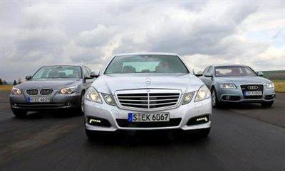 在這次對比測試中,E級又不可避免的遇到了來自慕尼黑和英格爾施塔特的老對手:寶馬5系和奧迪A6。292馬力的E350 CGI售價51944歐元;290馬力的A6 3.0TFSI帶有quattro四驅,售價48600歐元;寶馬530i售價46500歐元,擁有272馬力。