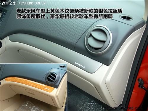 新樂風(fēng)的內(nèi)飾整體布局和老款車型完全一樣,但內(nèi)飾的配色則和老款車型有著明顯的差異。新樂風(fēng)采用了灰色內(nèi)飾,配以帶有金屬質(zhì)感的銀色拉絲飾條,這樣的搭配使整車的內(nèi)飾風(fēng)格看起來更加的年輕、時尚。但在豪華感與溫馨程度上比老樂風(fēng)采用的米色內(nèi)飾配黃色桃木飾條的風(fēng)格,明顯削弱不少。