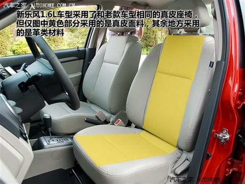 新樂風(fēng)1.6L車型和老款一樣采用了真皮座椅,但嚴(yán)格意義上來時,該車的座椅僅在與體接觸部分采用了真皮,其余地方使用的皮革材料。不過總體的做工還算可以。