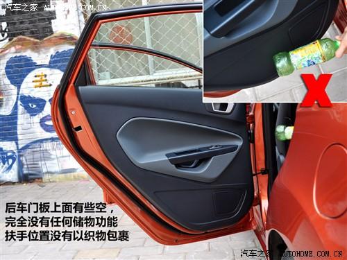前車門板的儲(chǔ)物格除了放水瓶的位置不夠穩(wěn)當(dāng)以外,還是非常實(shí)用的,開口寬度和深淺都很適中。而水瓶可以放在中間,前后都能分別再放個(gè)錢夾以及報(bào)紙雜志之類。我是覺得放水瓶的設(shè)計(jì)完全可以更妥貼一點(diǎn),因?yàn)檫@個(gè)并不是難事,至少就不會(huì)讓水瓶東倒西歪了。但是,我那個(gè)已經(jīng)喜歡上新嘉年華駕駛感覺的男同事卻認(rèn)為,這種功能有就行了,反正他也不會(huì)不擰蓋子就把飲料瓶放進(jìn)去。