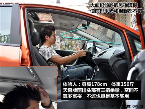 新嘉年華的前排頭部空間表現(xiàn)尚可,即使是在這款有天窗的車型上,尚有一部分余量,而像圖上這位身高178cm體重150多斤體驗人算是標準偏胖一點的亞洲人身材了,而之前試駕時那位身高185cm的瘦小伙也還是能輕松地坐進去。