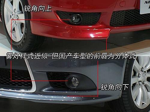 霧燈周邊的設(shè)計(jì)有所不同,塑料的燈罩邊緣的銳角設(shè)計(jì)位置兩車截然相反,但是霧燈的材質(zhì)以及照明方式未變。國(guó)產(chǎn)版藍(lán)瑟的前唇為分體樣式,進(jìn)口車為更完整化的一體樣式。