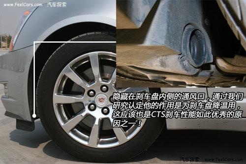 做完剎車測試,我們又對新CTS的輪胎,剎車盤片進行了仔細的觀察研究,發(fā)現在輪胎內側隱藏了一個出風口,正對著剎車盤。通過分析我們認定他的作用是對剎車盤降溫,這樣能夠讓剎車盤始終保持最佳狀態(tài)。看來新CTS能夠取得如此好的成績通用汽車在設計上確實下了一番苦心的!