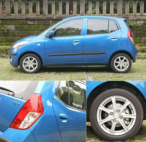 雖然為了爭取較寬敞的車室空間,i10采用了高車身的設(shè)計(jì),但在車側(cè)腰線特意提高,加上側(cè)窗上揚(yáng)收尾的線條,讓人不容易察覺i10高人一等的車身,在后車門把位置,原廠也在鈑件上加入一道折線,讓視覺效果更為豐富,而此次所試駕的頂級車型,則換上加裝的14吋鋁圈,增添運(yùn)動氣息。
