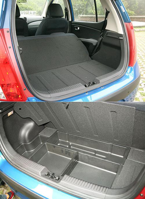 除了在乘坐空間帶來(lái)驚喜,i10后座還有一項(xiàng)特殊設(shè)計(jì),那就是三點(diǎn)安全帶均有專屬的扣還收納位置,在不搭載乘員時(shí)必免扣環(huán)晃動(dòng)產(chǎn)生噪音。而身為掀背車型,i10自然也提供后座椅放倒功能來(lái)擴(kuò)充行李容積,可惜的是并不能左右分離前傾,放倒后也無(wú)法與行李廂底板形成平面,讓實(shí)用性受到減損,好在i10的行李廂底板下方設(shè)置了隱藏式的防水置物隔間,稍稍彌補(bǔ)了這項(xiàng)缺憾。