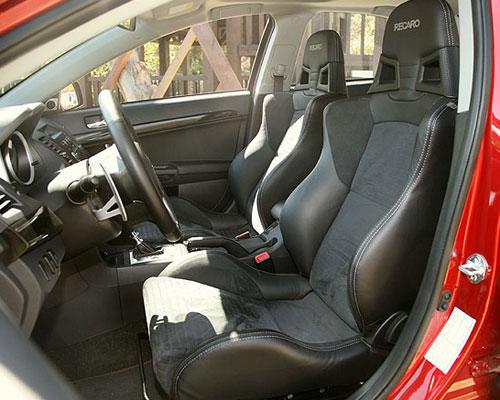 座艙要讓我贊賞的配備,我首推這組RECARO桶椅。就設計來看,這組桶椅采中央麂皮與兩側皮格混搭,加上頸部碳纖維材質所組成的RECARO運動桶椅,搭配灰黑色調后,整體視覺走冷硬路線,頗能呼應EVO X簡潔的座艙調性。