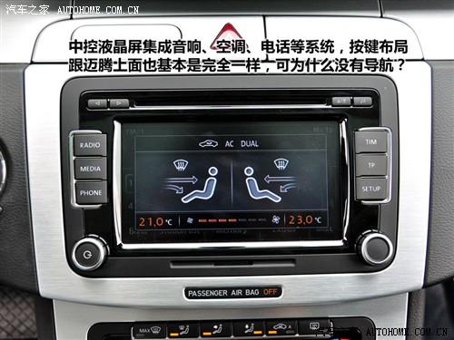 中控面板上有可以彈出的撥號鍵,右側則有一個儲物用的小抽屜,如果你見過進口邁騰就會覺得這些都很眼熟。一個中央液晶屏基本囊括了整個音響、導航、電話和空調(diào)系統(tǒng)的功能,不過這款低配車型上沒有導航,按鍵布局跟國產(chǎn)邁騰一模一樣。